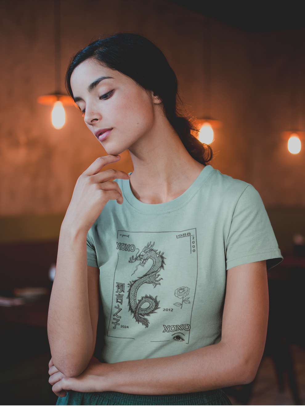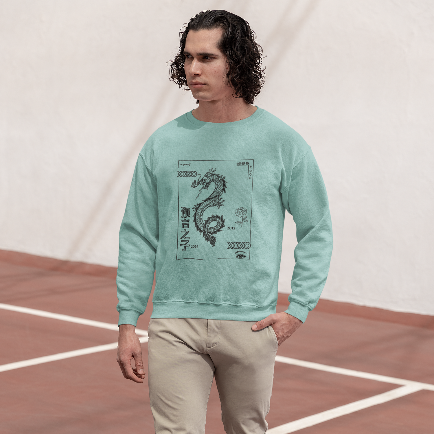 Dragon & Geometric Glyph Temporary Tattoos — Black Ink Asian-Inspired Designs